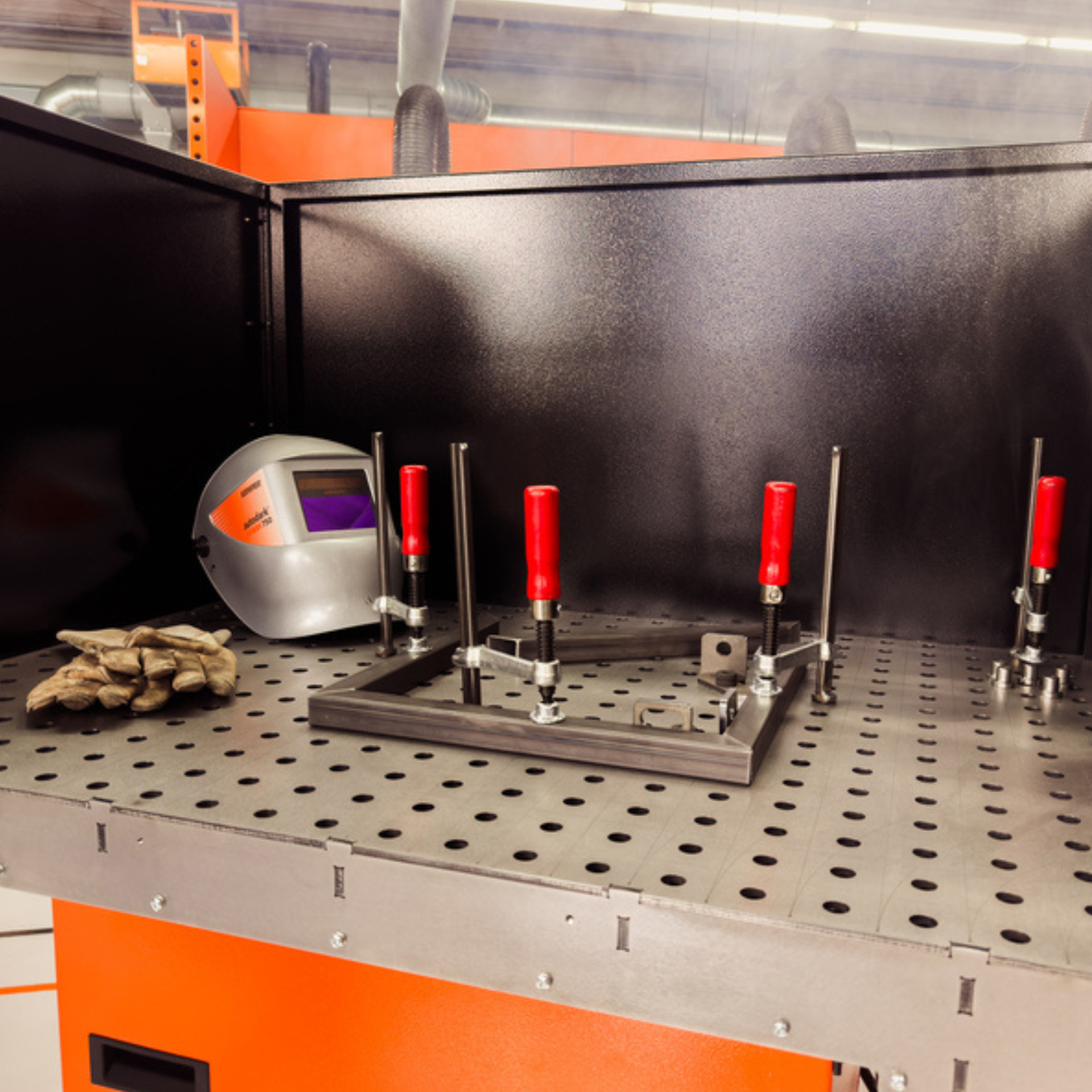 Combination of welding table and extraction system