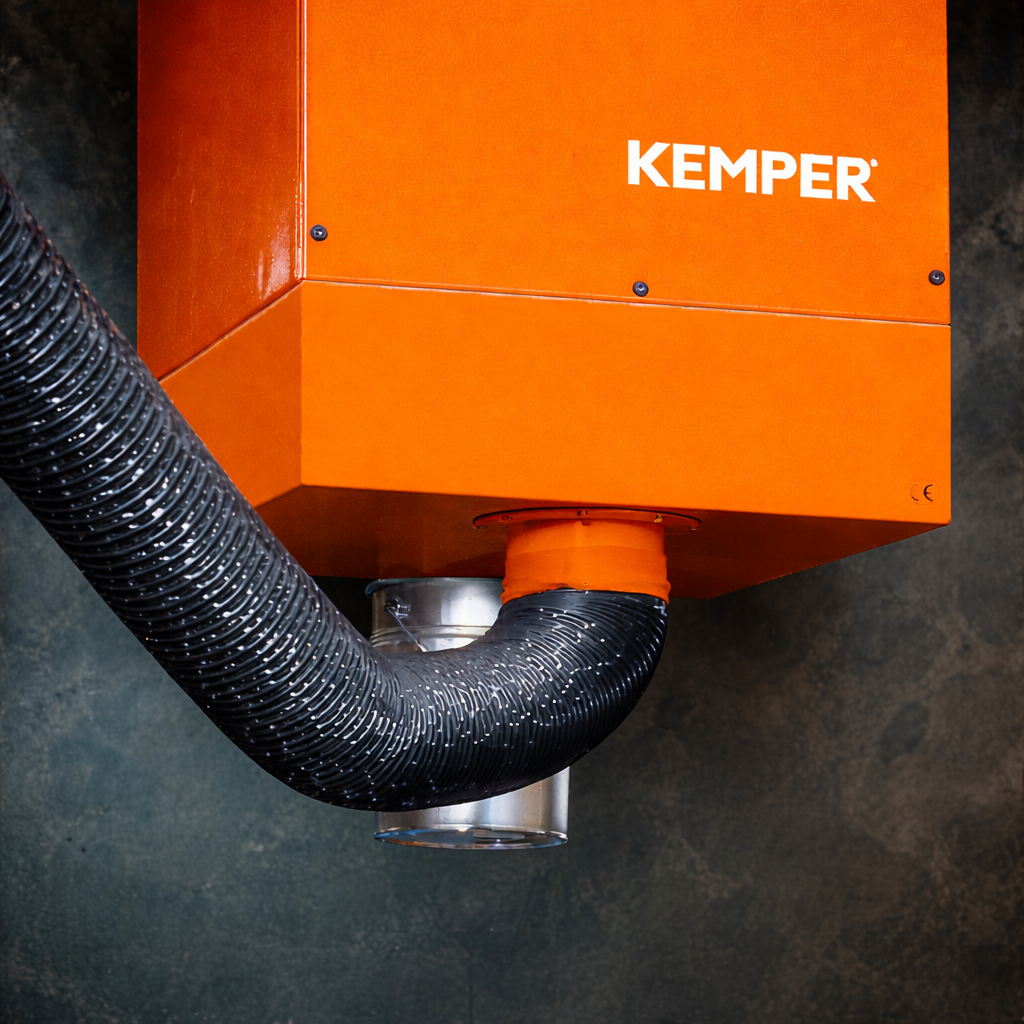 Due to its differential pressure-controlled, automatic filter cleaning system, the stationary cartridge filter for welding fume extraction is suitable for high levels of smoke and dust and non-stop operation with low operating costs. The KemTex® ePTFE membrane filter cartridges for ultra-fine dust particles separate particles even below 0.1 µm. The two-exhaust arm version with integral dampers allows simultaneous or alternating work in two places with adjustable extraction performance