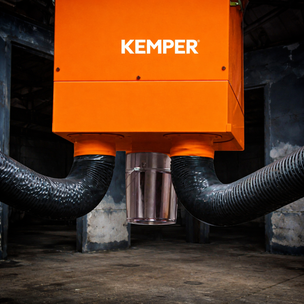 Due to its differential pressure-controlled, automatic filter cleaning system, the stationary cartridge filter for welding fume extraction is suitable for high levels of smoke and dust and non-stop operation with low operating costs. The KemTex® ePTFE membrane filter cartridges for ultra-fine dust particles separate particles even below 0.1 µm. The two-exhaust arm version with integral dampers allows simultaneous or alternating work in two places with adjustable extraction performance.