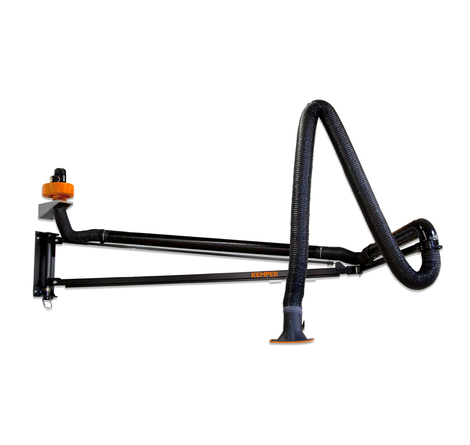 Le kit d'extraction Éco, composé d'un bras d'aspiration et d'un ventilateur, constitue une solution particulièrement simple et économique lorsque la filtration de l'air n'est pas indispensable. Il convient pour les grandes quantités de fumées et de poussières telles que les fumées de soudure, les gaz, les vapeurs, les poussières légères ou les gaz d'échappement de véhicules en utilisation permanente.